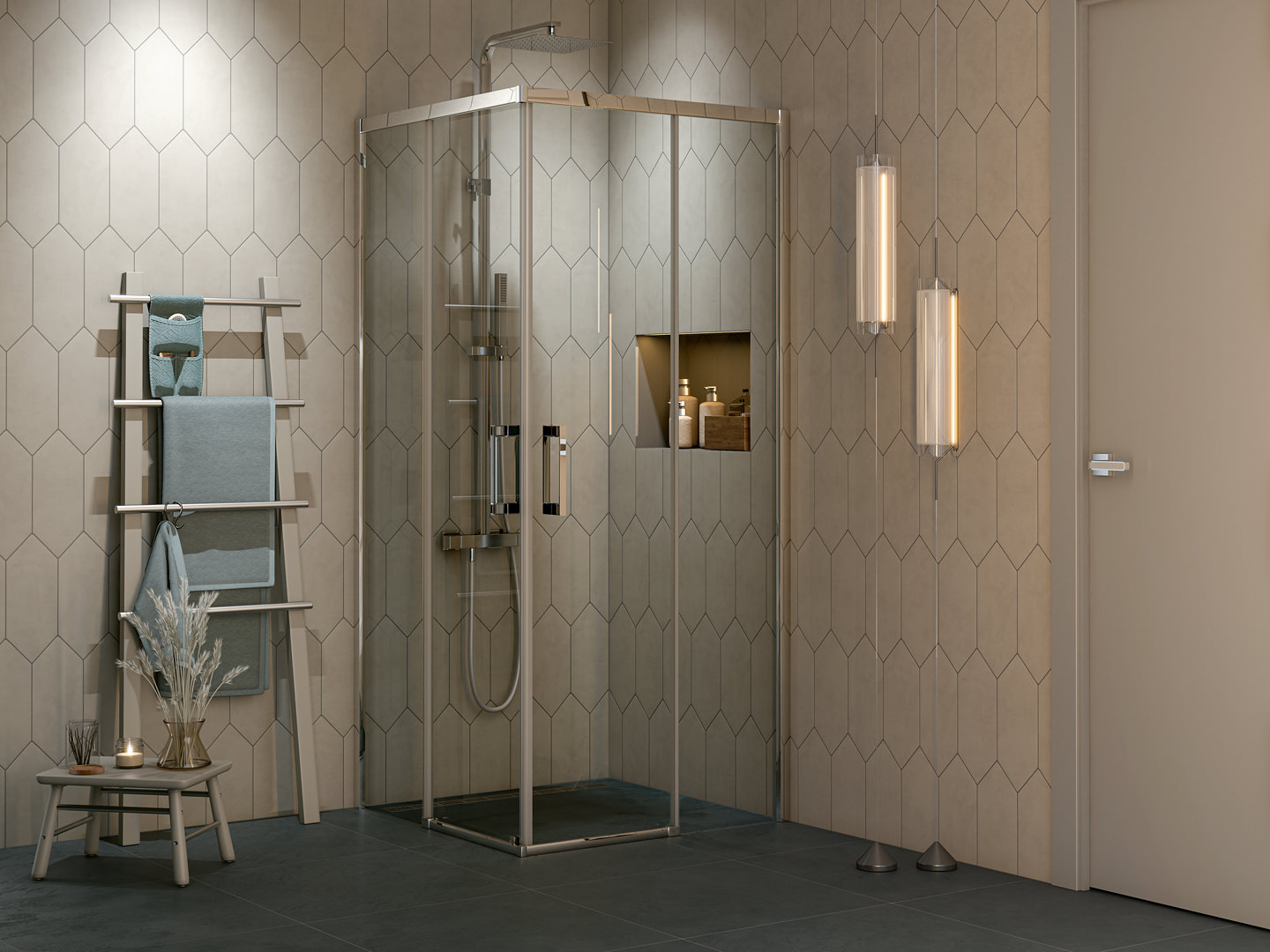 Новый ассортимент задуман и сделан так, чтобы решить задачи с установкой душевых ограждений для абсолютного большинства ванных комнат. Если душ расположен в нише, в таком случае будет достаточно установить в ней распашную или раздвижную дверь. Более распространённый вариант ограждения — душевой уголок. Можно выбрать готовый вариант с раздвижными дверями или создать свой из фиксированной боковой панели и одной двери. Подробная инструкция, идущая в комплекте к уголкам, и видео процесса сборки для каждой модели значительно упрощают задачу инсталляции.