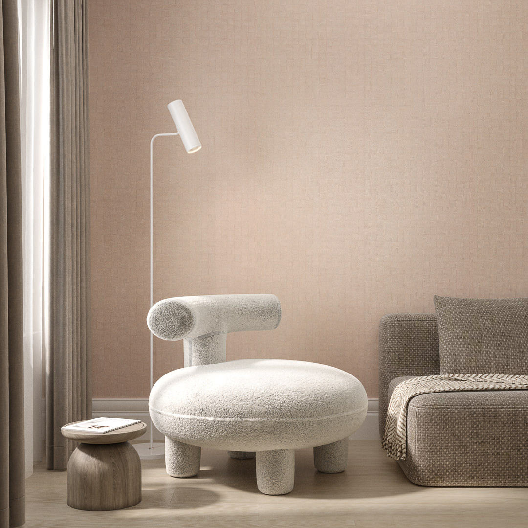 На поверхности обоев присутствует лёгкий геометрический рисунок. Кому-то он напомнит мозаичную выкладку, другие увидят в орнаменте сходство со шкурой рептилии или следами от мастерка, оставшимися после нанесения штукатурки. В любом случае это придаёт таким покрытиям дополнительный шарм.